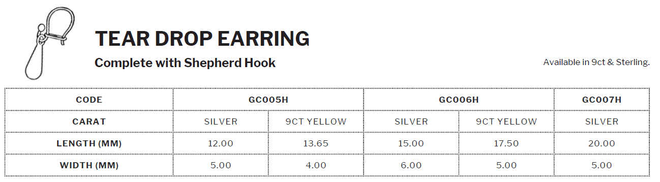 Teardrop Earring - SKU: GC007H Carat: 9Y