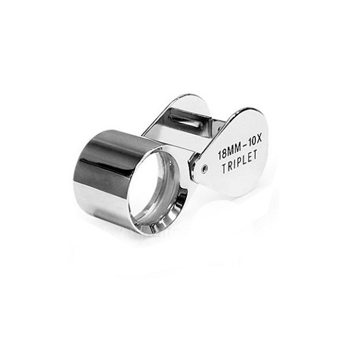 Triplet 10X Round 18mm Silver. Three separate lenses are bonded together virtually eliminating any distortion at the outer edges of the magnifier.